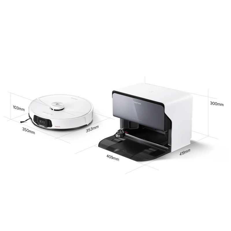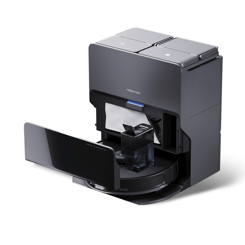 نقطه اوج نوآوری در روبوراک S8 MaxV Ultra، ایستگاه همه کاره و هوشمند آن است. این ایستگاه، فراتر از یک پایه شارژ ساده عمل میکند و به عنوان یک مرکز فرماندهی کامل برای تمامی فرآیندهای نظافتی شناخته میشود. این قابلیتها شامل شارژ خودکار جارو، تخلیه خودکار زباله و شستوشوی خودکار پدهای تی است. گنجایش مخزن زباله پایه شارژ ۲.۵ لیتر، مخزن آب تمیز ۴ لیتر و مخزن آب کثیف ۳.۵ لیتر است که نیاز به دخالت دستی را به شدت کاهش میدهد و به کاربر این امکان را میدهد که برای مدت طولانی از این بابت آسوده باشد. ویژگیهای خود تخلیه شونده و خود خشک شونده نیز نظافت را به یک تجربه کاملاً بدون زحمت تبدیل میکنند و نیاز به دخالت کاربر را به شدت کاهش میدهند. همچنین، امکان اتصال به آب شهری و پر شدن اتوماتیک نیز وجود دارد که فرآیند پر شدن مخزن آب تمیز را به صورت کاملاً خودکار انجام میدهد و کاربر را از هرگونه دخالت بینیاز میکند.